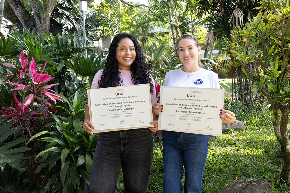 Felicitamos a nuestras colaboradoras Inés María Materón, Jefe de Mercadeo y Comunicaciones, y Catalina Escarria, Líder de Contenidos Digitales del Colegio Alemán de Cali, por su reciente graduación del Postgrado en Estrategia Publicitaria de Marca en Entornos Digitales, conferido por la Universidad Autónoma de Occidente.